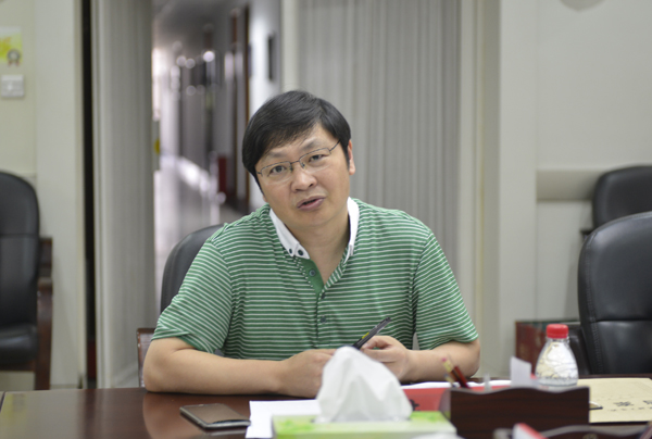 副校长李学志与张彝伦教授一行在行政楼二楼会议室进行座谈