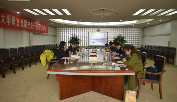 4月13日上午,台湾静宜大学副校长周文光、国际与两岸事务处处长林昌荣、两岸事务组组长吕富美来我校交流访问。座谈会在行政楼三楼会议室召开,我校副校长李学志出席,校长办公室、国际合作与交流处、经济管理学院、文法学院、外国语学院等有关单位负责人参加会议。