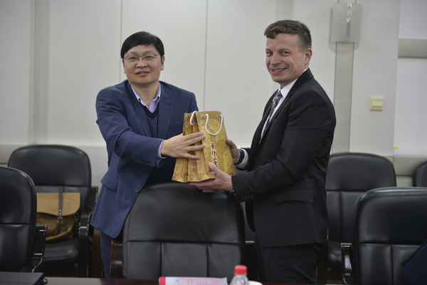 副校长李学志向史蒂文·里奇一行赠送礼品