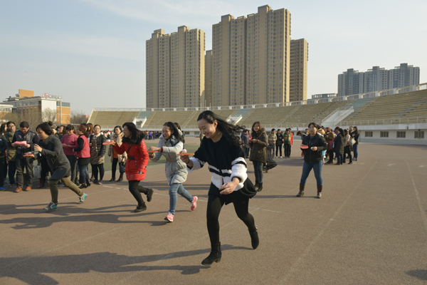 三月的安工校园,春意盎然,喜气洋洋。为庆祝“三八”国际妇女节,3月11日下午,校工会在1号体育场举行了一场丰富多彩的趣味运动会,全校女教职工踊跃参与比赛,现场气氛异常活跃热闹。校党委副书记、工会主席杨培,副校长李学志、万鹏杰、张玲等到现场观看。