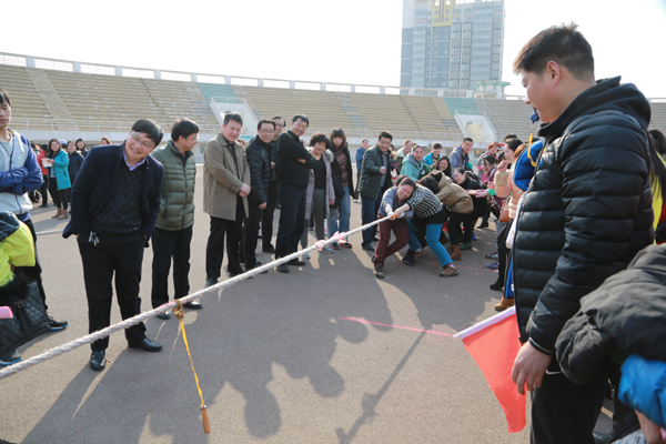 杨培在活动现场详细了解了活动的进展情况,嘱咐工作人员要认真做好各项服务工作。校领导们还一同为参加拔河比赛的女教职工们助威加油,在妙趣横生的活动中共同庆祝“三八”国际妇女节。