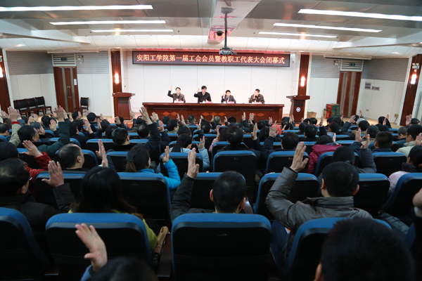下午3:00,大会在庄严的国歌声中开幕。来自全校各院部的119名正式代表出席会议,87名列席代表和特邀代表参加会议。安阳市总工会副主席宋忠平、市委教育工会主席张学政应邀参加会议。