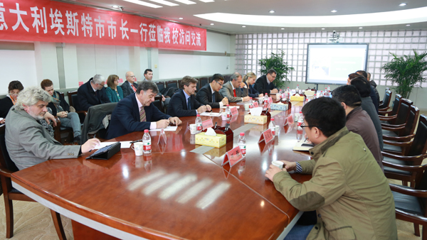 11月21日下午,意大利埃斯特市市长吉安卡洛·皮瓦一行12人访问我校。校长任中普、副校长李学志在行政楼三楼会议室亲切会见了来访客人。安阳市外事办公室主任秦建华及我校校长办公室、科研处、经济管理学院、国际合作与交流处等相关部门负责人参加了会谈。座谈会由副校长李学志主持。