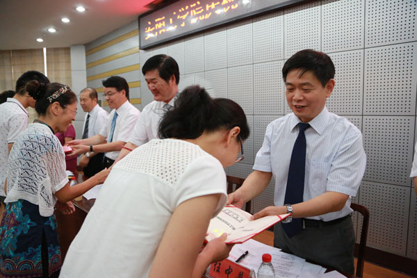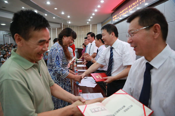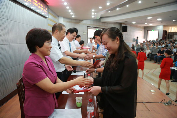 校领导为受表彰的优秀教育工作者颁发荣誉证书