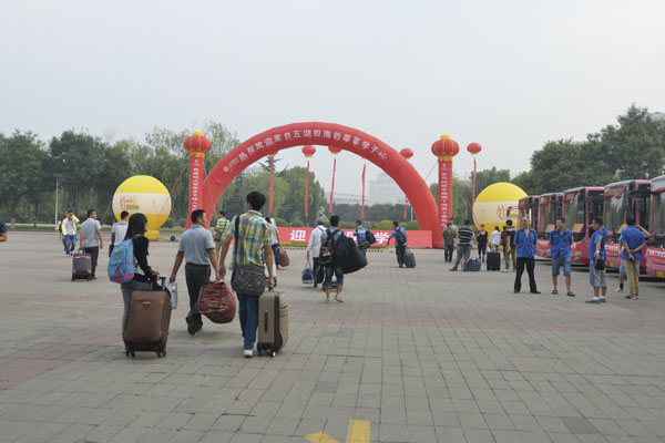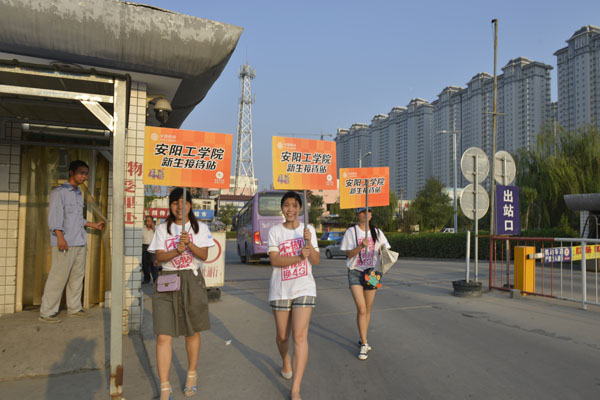9月6日,我校迎接2014级新生工作正式开始。早上七点,首派的八辆校车发车,分别开往安阳火车站、客运中心站、客运东站、高铁站,迎接来自全国各地的2014级新生。
