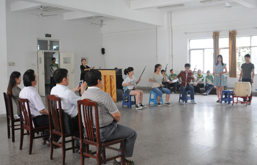 督导组专家现场观看学生民族器乐节目表演