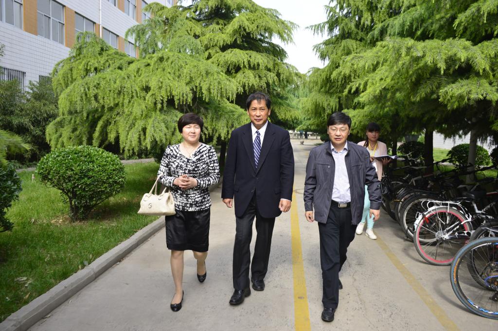副校长李学志和国际合作与交流处于艳红陪同卫祖赏,参观我校校园
