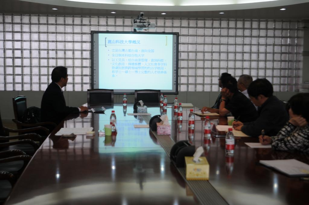 座谈会上,李学志代表学校对卫祖赏的到来表示热烈欢迎,并向客人简要介绍了我校历史沿革、办学特色等情况,回顾了两校合作办学历程,并代表学校感谢昆山科技大学师生对我校首批赴台进行短期研修的18名师生的关爱、关心、指导、帮助。卫祖赏对我校的热情接待表示诚挚的感谢,并通过课件生动地展示了昆山科技大学的发展概况、人才培养、科学研究、产学合作、国际合作、通识教育与教师评价等。