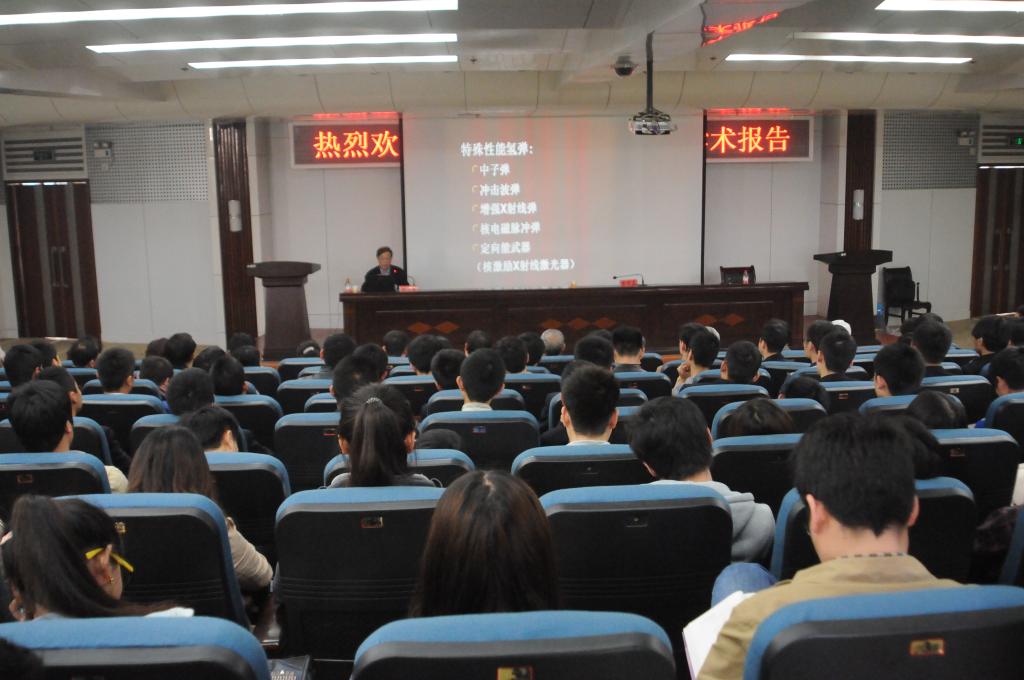 报告会上,胡院士简要介绍了什么是核武器、核武器的分类与性能、核武器工程的特点、核武器技术的发展趋势、我国核武器发展历程及“两弹”精神,阐述了我国发展核武器的目的及对世界和平所起的作用,以及“两弹”精神的启示和在人才培养方面的作用等。他还通过引用我国在核事业上作出突出贡献的科学家前辈的事迹,诠释了热爱祖国、无私奉献、自力更生、艰苦奋斗、大力协同、勇于登攀的“两弹精神”的深刻内涵,揭示了广大科研工作者在党的领导下献身科技工作,服务国家的宝贵精神。胡思得院士还现场回答了学生的提问。