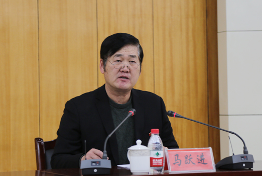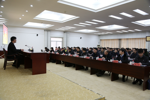 我校党委书记马跃进在行政楼四楼会议室为全校科级及以上党员干部上党课