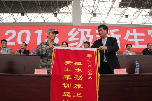 汇报表演后,党委书记马跃进代表学校向71620部队赠送了锦旗,感谢71620部队对我校新生军训工作的大力支持。副校长崔利军宣读了军训先进单位和先进个人的表彰决定,对文法学院等5个军训先进单位和全校225名军训先进个人进行表彰。