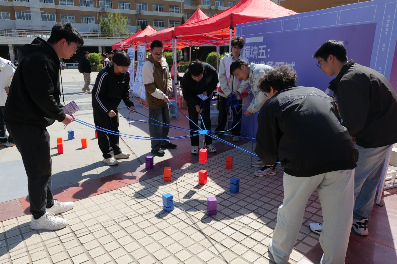 此次活动紧扣“生涯规划”主题,设置六大模块、八大闯关游戏,涵盖职业潜力挖掘、性格探索、方向选择、行业探索、团队合作和胜任力探索等内容。活动现场,同学们热情高涨,积极完成关卡任务、参与测评,齐心协作开展团队活动。现场还设有简历指导区和征兵咨询处,为学生提供就业指导与政策解读。