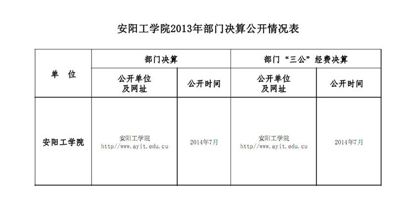 根据安阳市财政局安财库[2014]14号文件“安阳市财政局关于转发《河南省财政厅关于推进部门决算公开工作的通知》的通知”精神,现对我校2013年决算予以公开。详见附表。
