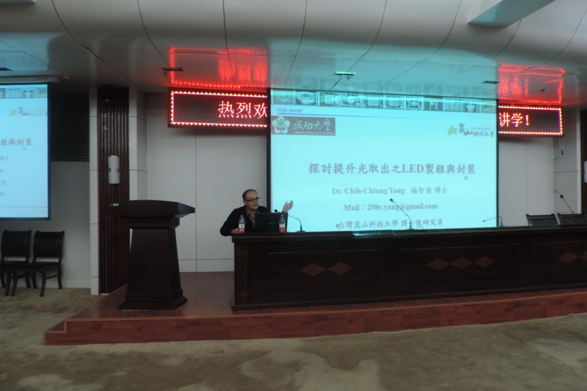 10月19日下午,应数理学院邀请,台湾昆山科技大学杨智强博士后研究员来我校讲学,在艺术楼报告厅为数理学院200余名师生作了题为《探讨提升光取出之LED制程与封装》的学术报告。